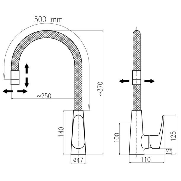 - Гибкий излив с режимом «душ» расширяет функциональные возможности использования.