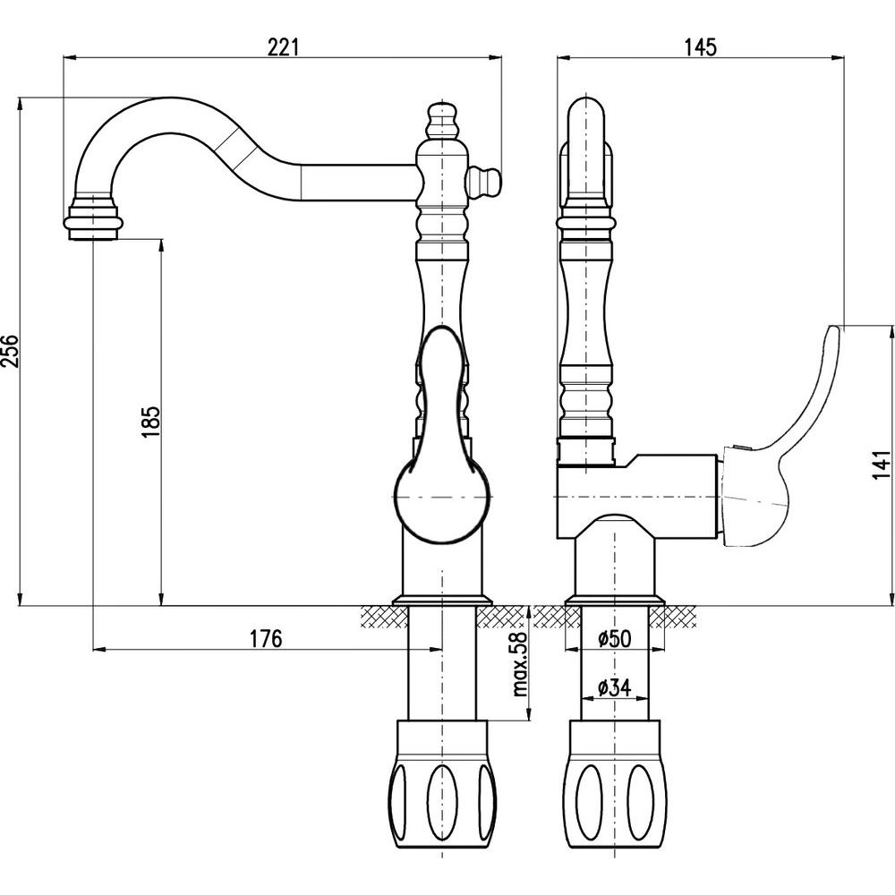 Смеситель изготовлен из прочной латуни и имеет глянцевую поверхность, которая подчеркивает его современный стиль. Высота излива составляет 18.5 см, а длина — 17.6 см, что делает его идеальным для большинства кухонь. В комплекте идет гибкая подводка и все необходимые крепления для быстрого и легкого монтажа. К преимуществам смесителя также относится наличие ограничителя температуры, который защищает от случайных ожогов.