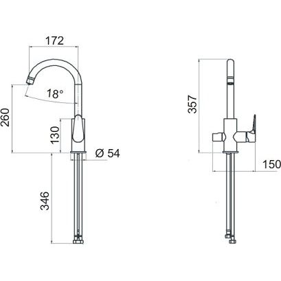 Смеситель изготовлен из высококачественной латуни с глянцевой поверхностью, что не только услаждает глаз, но и облегчает уход за изделием. Высота излива составляет 26 см, а длина — 17.2 см, что обеспечивает удобство при использовании. Оснащён аэратором для мягкого потока воды и гибкой подводкой для легкости монтажа. Керамический картридж обещает долгий срок службы без сбоев. Поставляется с полным комплектом креплений для быстрой установки.
