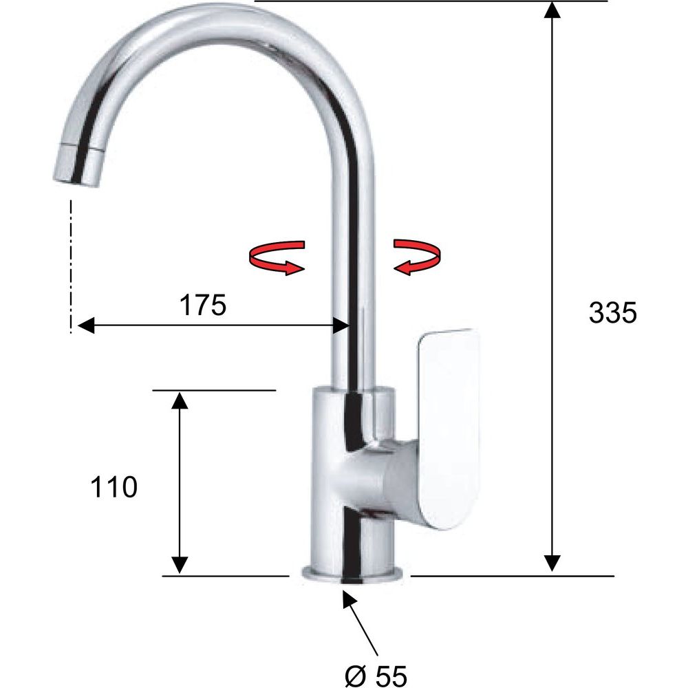 - Эргономичный дизайн: высота излива составляет 22 см, а длина — 17.5 см, что делает использование смесителя комфортным и удобным.