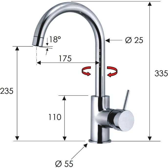 Смеситель имеет удобную высоту излива в 23.5 см и длину в 17.5 см, что обеспечивает комфортное использование даже с глубокими раковинами. Латунный корпус защищен глянцевым хромом, что делает его устойчивым к коррозии и придает великолепный внешний вид. Внутри установлена прочная керамическая кран-букса, гарантируя плавность в управлении потоком воды. Смеситель поставляется с гарантийным сроком 5 лет, что свидетельствует о надежности и долговечности изделия.