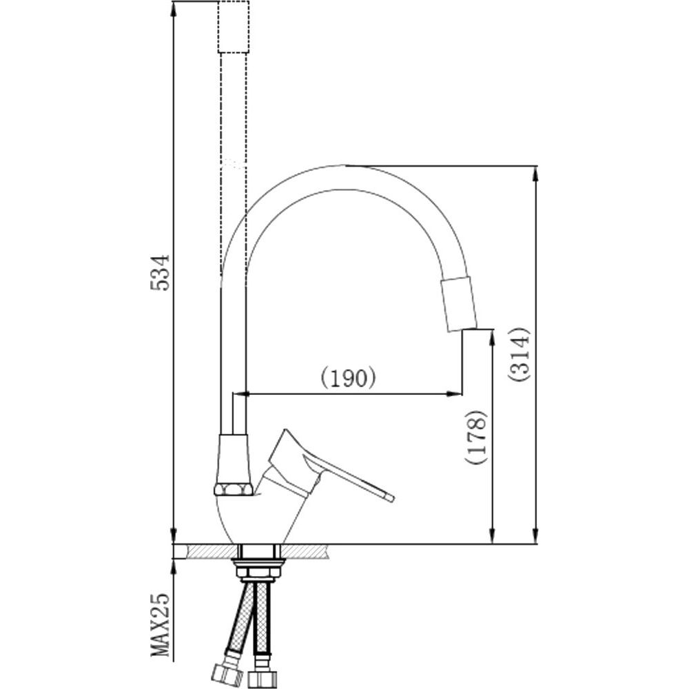 Смеситель выполнен из цинкового сплава и силикона, что обеспечивает прочность и долговечность. Высота излива составляет 17,8 см, а длина — 19 см, что делает его идеальным для большинства кухонных задач. Фиксированный излив оснащен глянцевой поверхностью и аэратором, который способствует экономии воды. Имеется функция быстрого монтажа и гибкая подводка, что упрощает установку и эксплуатацию. Смеситель произведен в России и имеет гарантию 5 лет.
