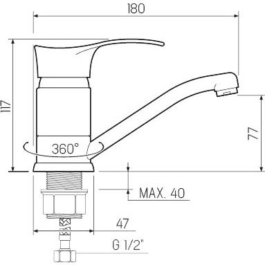 Смеситель изготовлен из прочного цинкового сплава с эффектной глянцевой отделкой. Высота излива составляет 7.7 см, что делает его идеальным для большинства стандартных кухонных раковин. Встроенный керамический картридж обеспечивает надежное и бесшумное управление потоком воды. Смеситель оснащен аэратором, который снижает расход воды, сохраняя высокий уровень комфорта. В комплект входят гибкая подводка и крепления для легкой установки. Гарантия на изделие составляет 5 лет, что подтверждает его высокое качество и надежность.