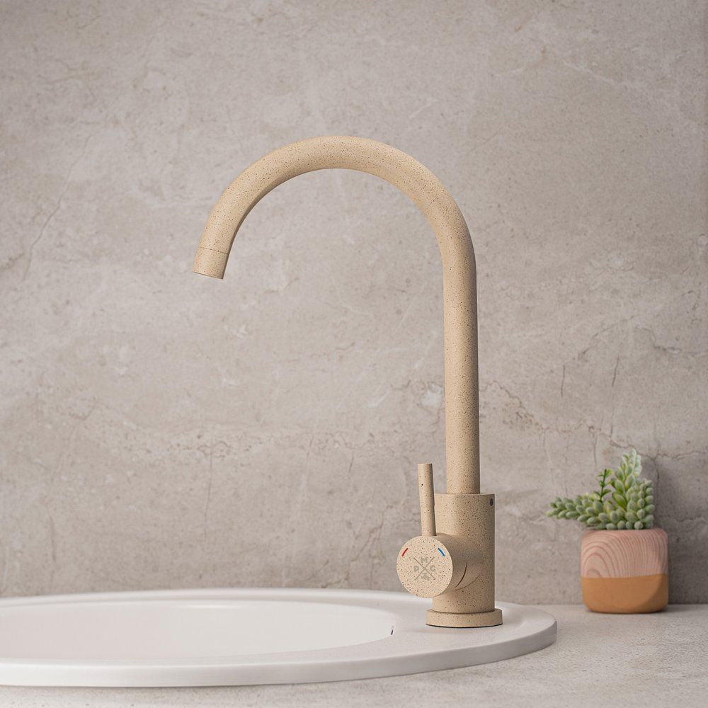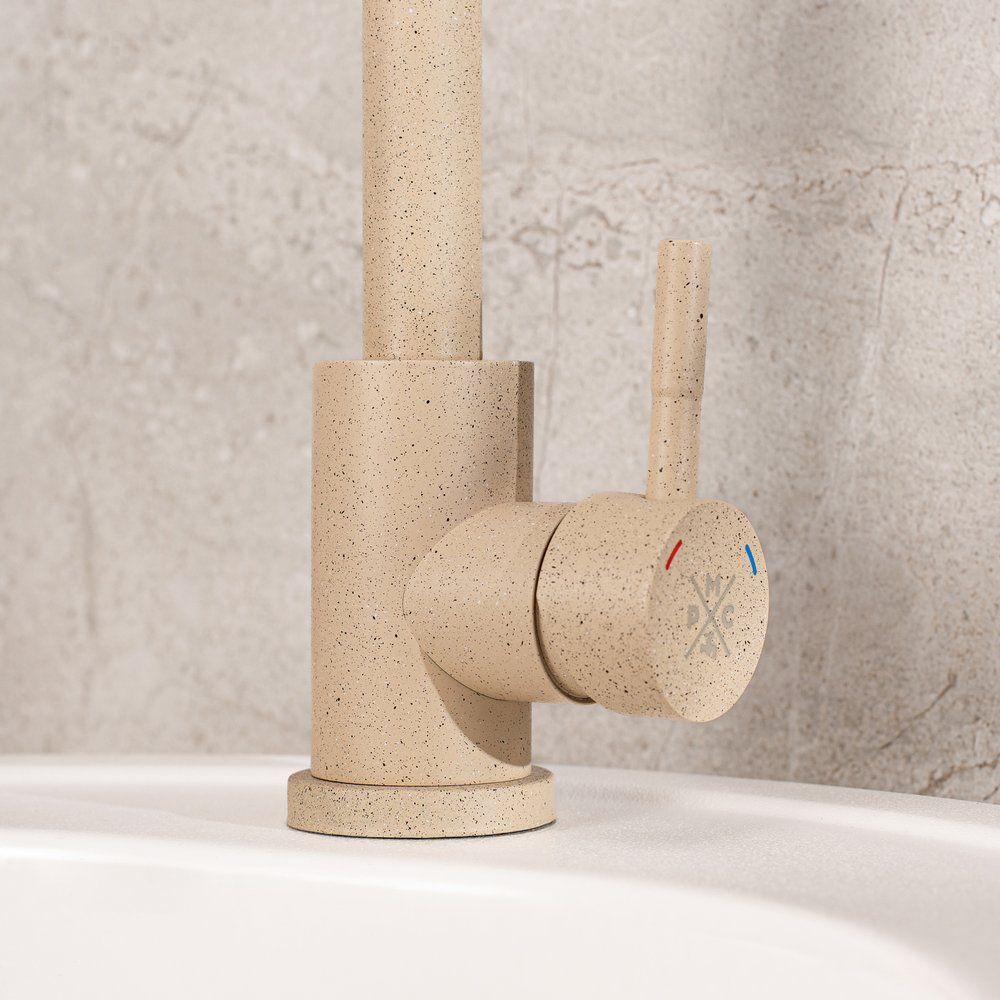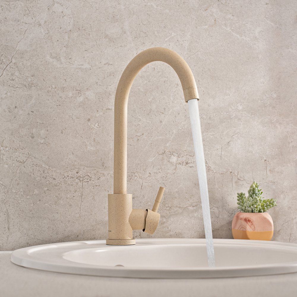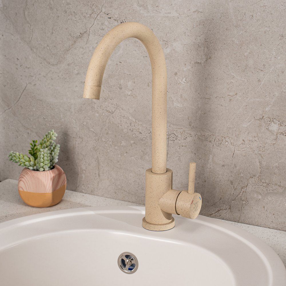 Смеситель для кухни от бренда РМС из коллекции Sus124bgk изготовлен из высококачественной нержавеющей стали. Высота излива составляет 24 см, что обеспечивает удобство в использовании: вы с легкостью сможете наполнить даже самые высокие кастрюли. Встроенный аэратор обеспечивает мягкий поток воды, экономя её расход. Благодаря керамическому картриджу, смеситель работает тихо и плавно. Бежевый цвет матовой поверхности идеально сочетается с различными стилями интерьеров. В комплекте поставляется гибкая подводка и крепления для легкой установки.
