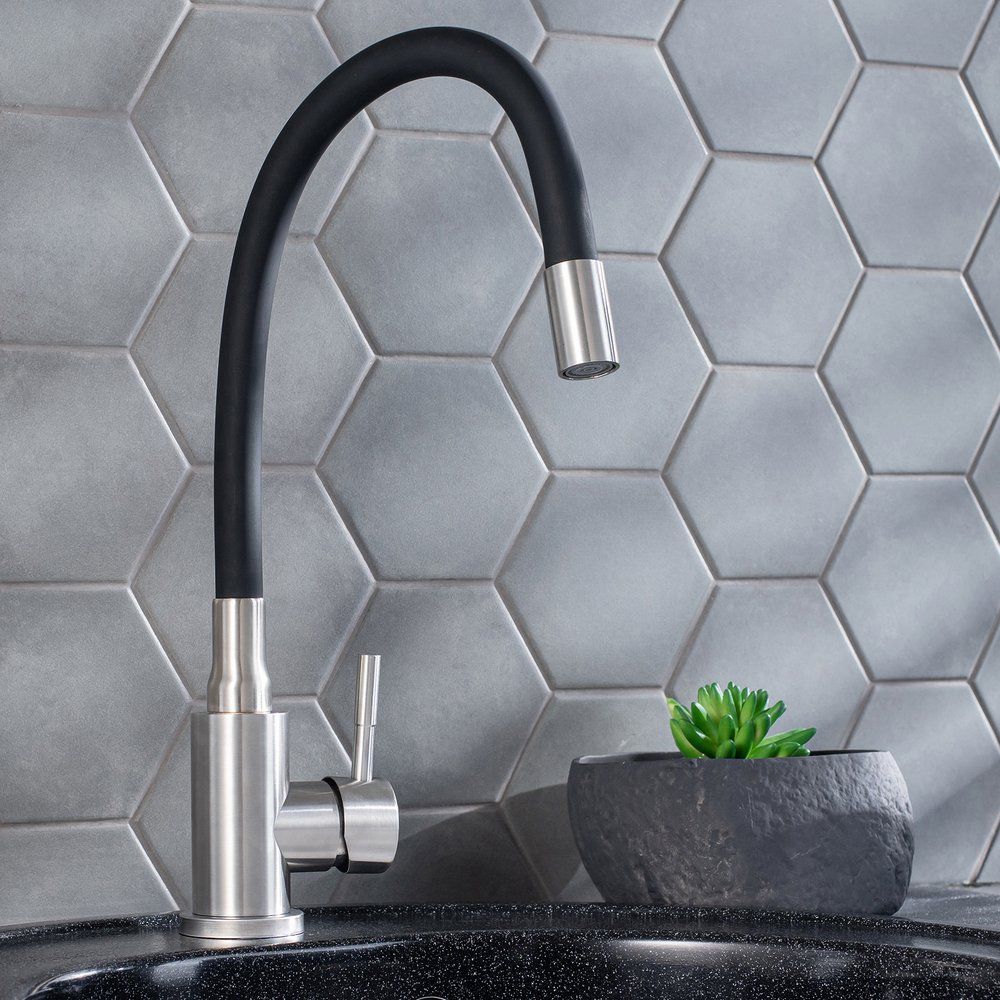 Этот смеситель выполнен из нержавеющей стали, что обеспечивает прочность и устойчивость к коррозии. С гибким изливом высотой в 26 см и длиной 24 см, вам будет комфортно использовать его в любых условиях, обеспечивая доступ даже в самые сложные участки раковины. Керамический картридж в конструкции гарантирует надежность закрытия и открывания воды, а матовая поверхность добавляет не только эстетическую привлекательность, но и помогает скрыть небольшие следы от пальцев. Смеситель оснащен аэратором для экономии воды и специальными креплениями, что делает его идеальным выбором для домашней установки.