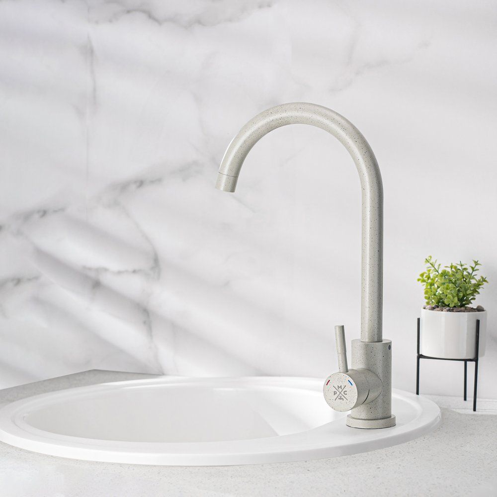 Смеситель для кухни РМС Sus124gy SUS124GY-017F — это элегантное и функциональное решение, которое станет отличным помощником на вашей кухне. Выполненный из высококачественной нержавеющей стали, он идеально впишется в интерьер благодаря стильной матовой поверхности. Технология керамического картриджа гарантирует долговечность и надежность, а высота излива 24 см обеспечивает удобство использования для любых кухонных задач.