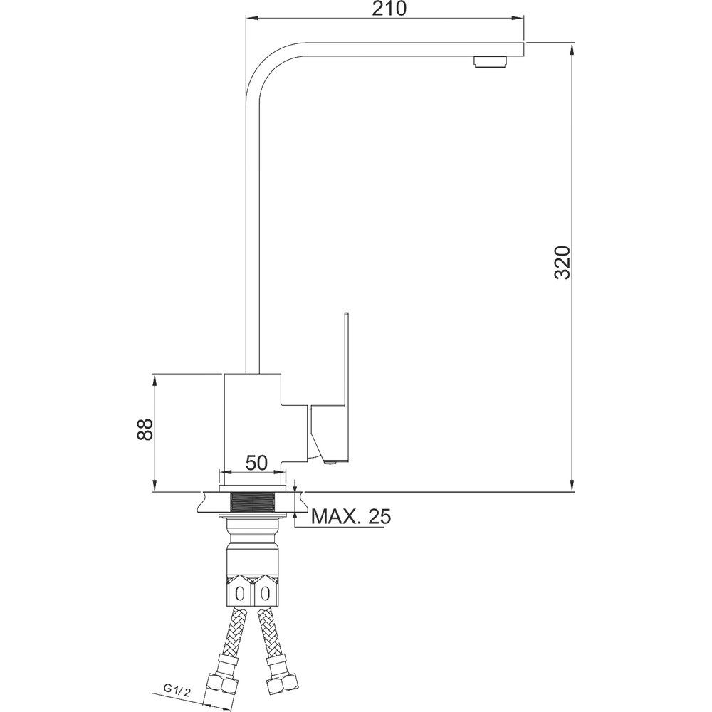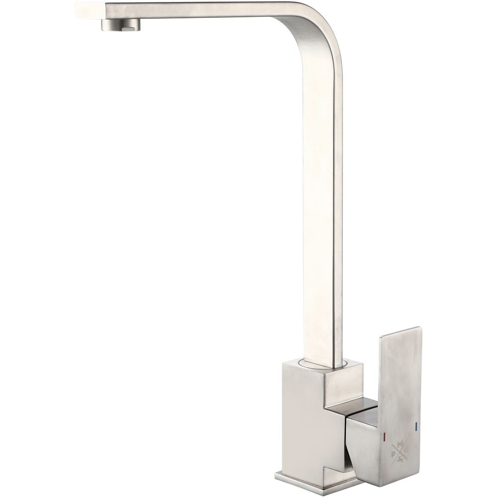 Смеситель выполнен из нержавеющей стали и обладает матовой поверхностью, предотвращающей образование отпечатков пальцев и пятен. Высота излива составляет 30,1 см, а его длина — 21 см, что обеспечивает комфорт при мытье посуды и наборе воды. Изделие оснащено гибкой подводкой и стандартными креплениями, что упрощает установку. Главной характеристикой является керамический картридж, который увеличивает срок службы смесителя.