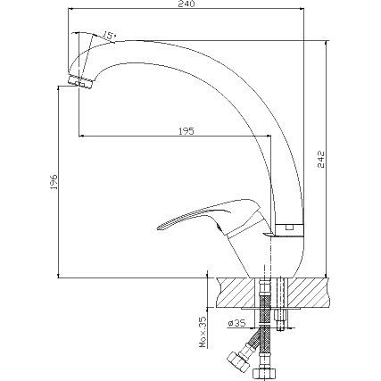 - Излив: высота 19.6 см и длина 19.5 см, поворотный.