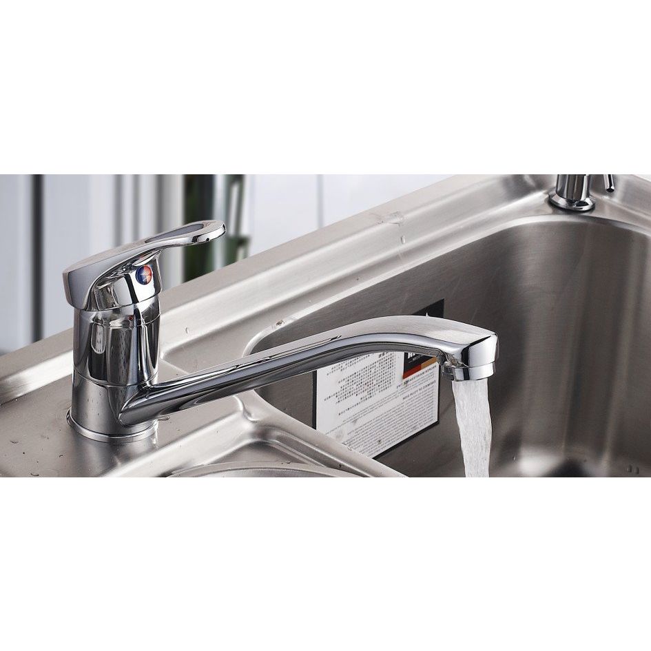 - Удобство: поворотный R-образный излив облегчает доступ к мойкам.