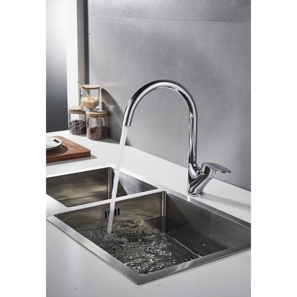 Российский производитель Rossinka предлагает отличный выбор для тех, кто ищет надежное и доступное решение для своей кухни — смеситель для кухни RS45-23. Этот смеситель сочетает в себе прочность и долгий срок службы, благодаря использованию высококачественной латуни и оснащению герметичным керамическим картриджем. Управление температурой и напором воды осуществляется с помощью удобного рычага, что делает эксплуатацию особенно комфортной. Поворотный излив с пластиковым аэратором не только обеспечивает лёгкость очистки от известкового налета, но и поддерживает постоянный зеркальный блеск хромированной поверхности на протяжении всего срока службы.
