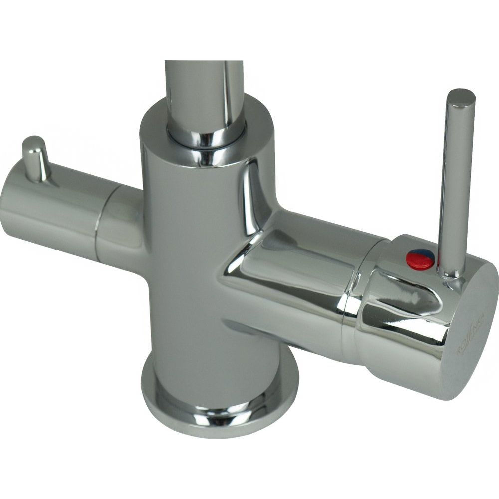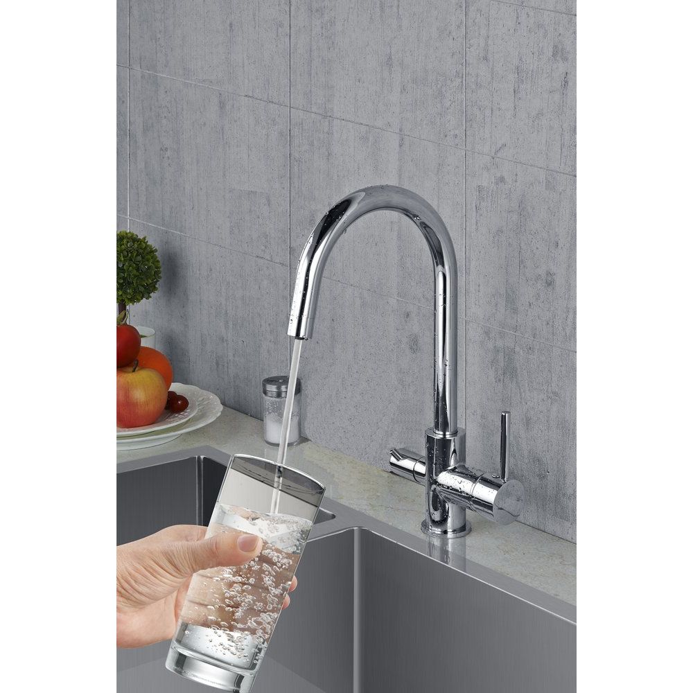 - Функциональность и удобство благодаря совмещенному изливу для фильтрованной и водопроводной воды.