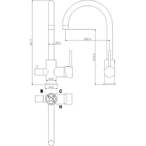 Смеситель изготовлен из прочной латуни с низким содержанием свинца, что гарантирует его безопасность и долговечность. Высота излива составляет 23.65 см, а длина – 18.84 см. Глянцевая поверхность придает изделию роскошный вид, легкий в уходе. Установлен керамический картридж, обеспечивающий надежность и плавность работы. В комплекте вы найдете аэратор, гибкую подводку, крепления и переходник для подключения фильтра.