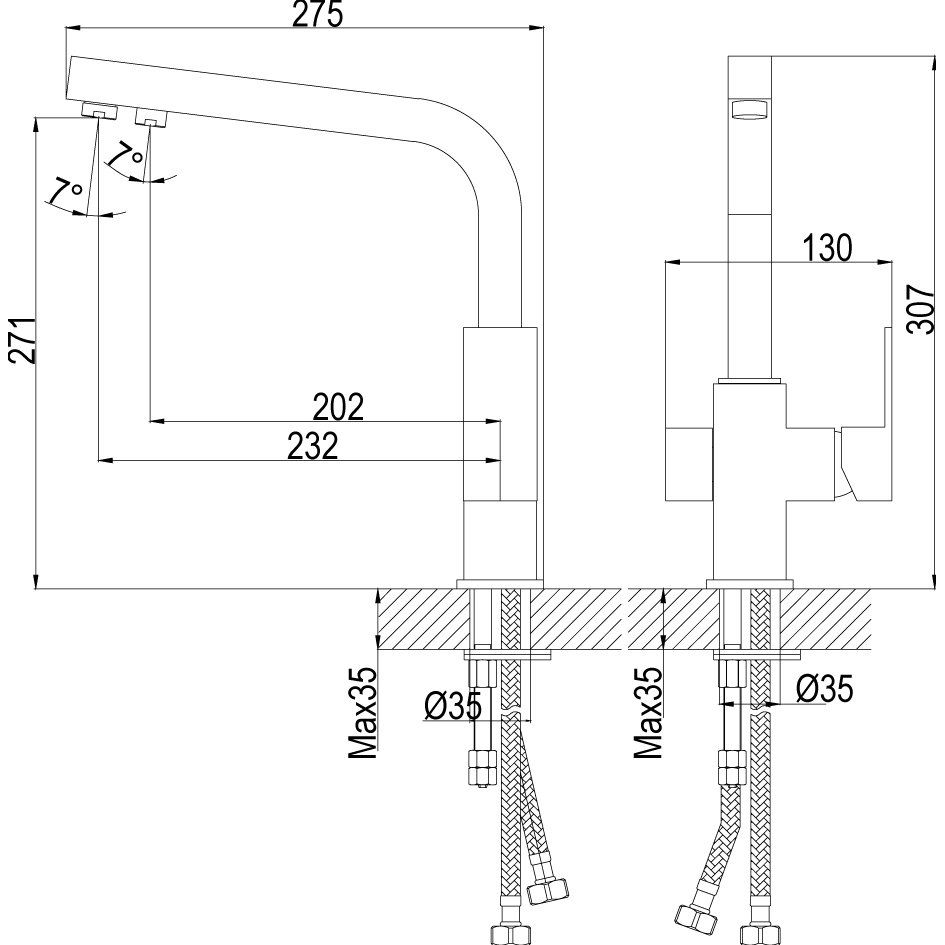 - Высота излива: 27,1 см, идеально подходит для выполнения различных кухонных задач.
