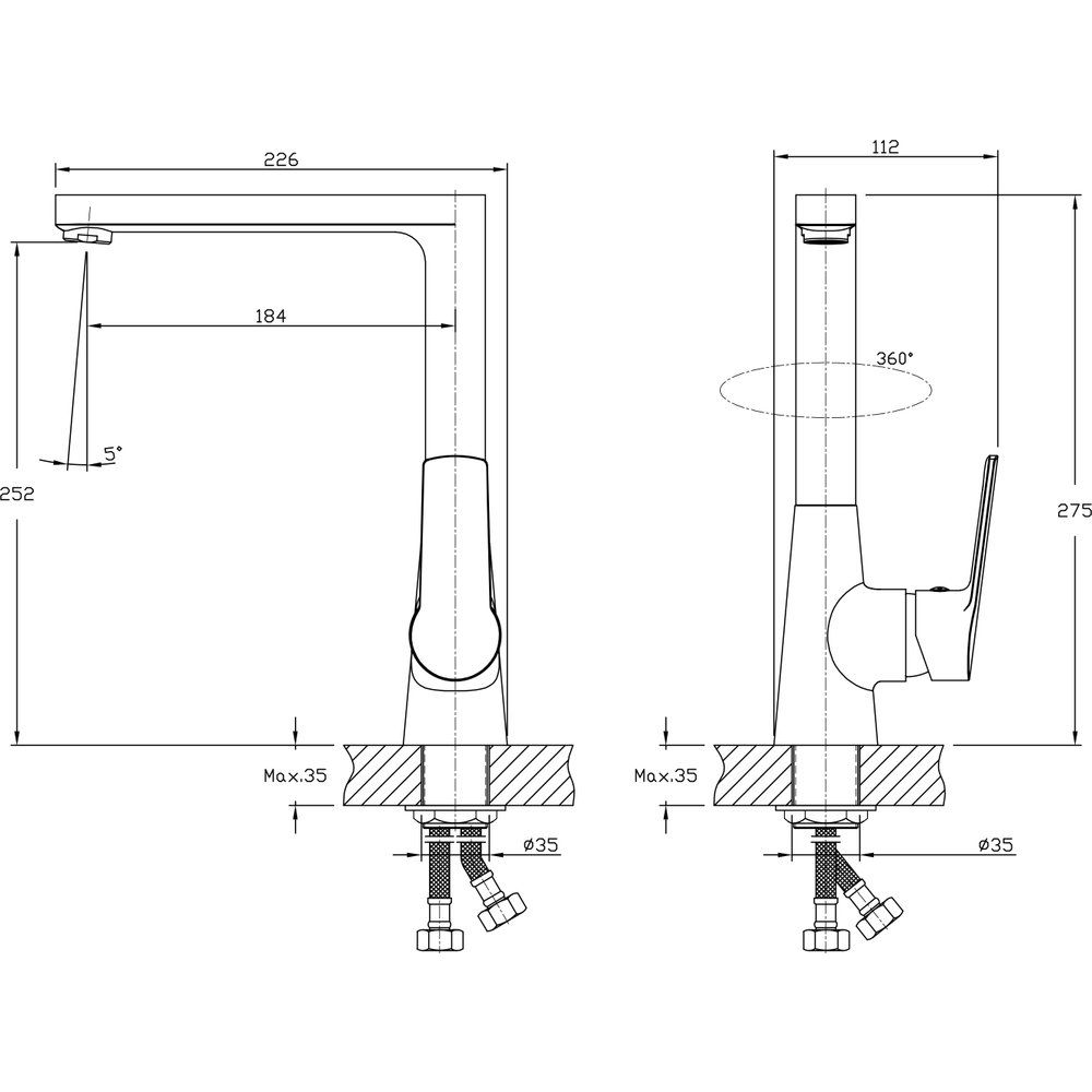- Поворотный на 360° излив для полного контроля и удобства использования.