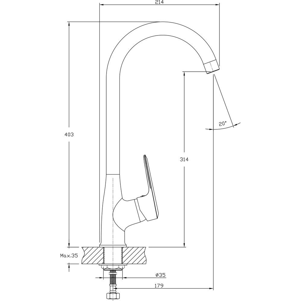 - Высота излива составляет 31.4 см, а длина — 17.9 см.