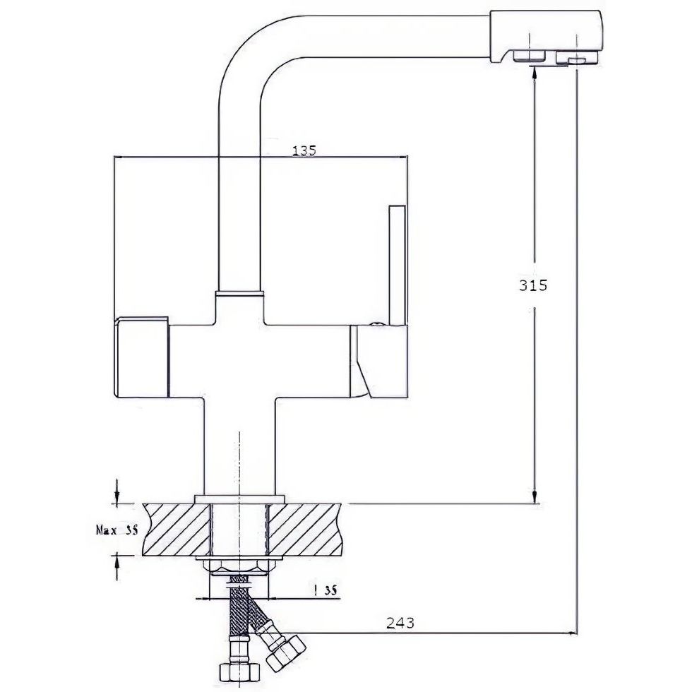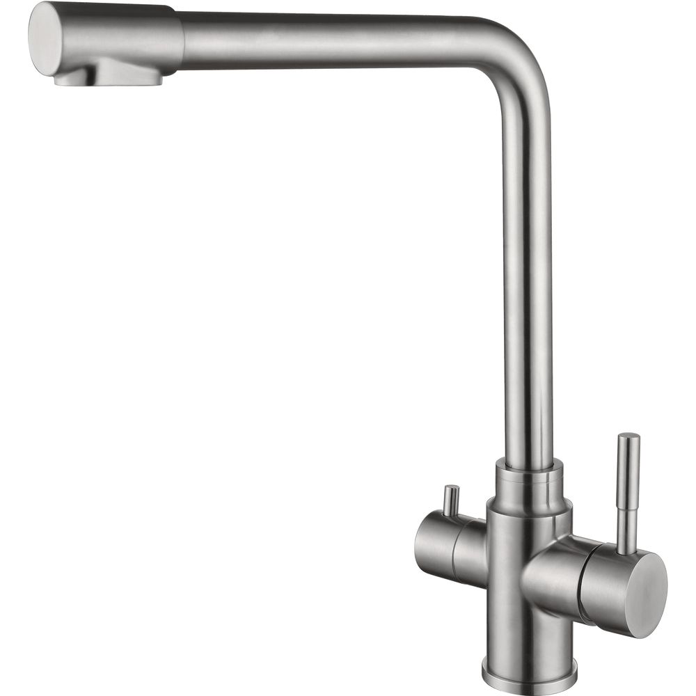 Смеситель для кухни Rush MS9035-33 оснащен аэратором из пластика и имеет надежный корпус из нержавеющей стали. Высота излива составляет 31.5 см, а его длина — 24.3 см, что обеспечивает удобное использование в любых кухонных раковинах. Совмещенный излив предназначен для подачи как нормальной, так и фильтрованной воды, что позволяет забыть про дополнительную фильтрацию. Также присутствует гибкая подводка и стандартные крепления, обеспечивающие простую и быструю установку. Глянцевая сатиновая поверхность придаст кухне современный вид и легкость в уходе.