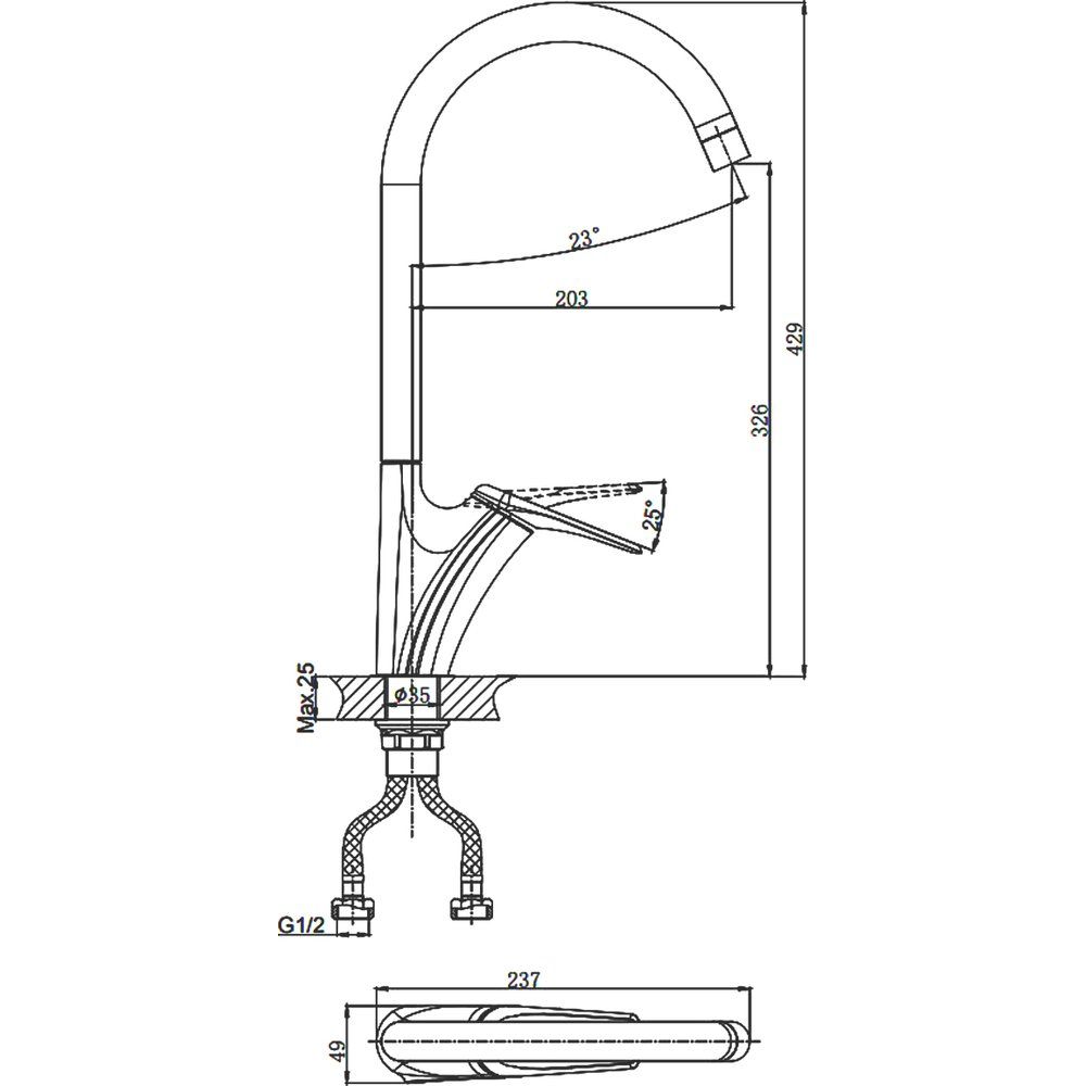 Смеситель изготовлен из прочной латуни, что гарантирует долгий срок службы и устойчивость к коррозии. С высотой излива 32.6 см и длиной 20.3 см, он обеспечивает удобное использование с любыми кухонными раковинами. Встроенный пластиковый аэратор с нержавеющим корпусом обеспечивает мягкий поток воды, снижая расход и предотвращая разбрызгивание. Смеситель комплектуется гибкой подводкой длиной 40 см с латунными гайками, что делает монтаж быстрым и простым.