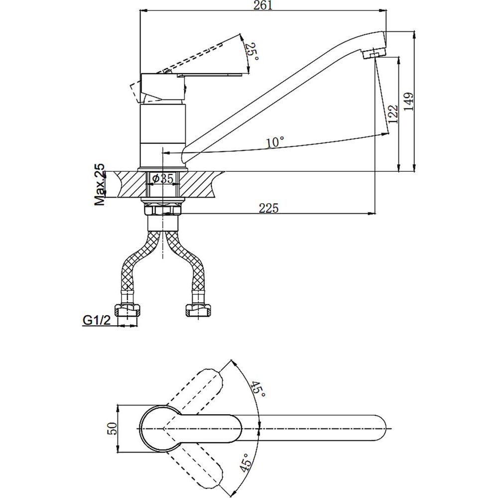 Прежде чем приобрести смеситель Rush Tenerife TE2835-26, убедитесь, что размеры вашего кухонного пространства соответствуют установленным параметрам изделия. Благодаря универсальной присоединительной группе, смеситель легко монтируется на горизонтальную поверхность. Важно учитывать, что правильная установка гарантирует долгий срок службы и бесперебойную работу в течение всего гарантированного периода в пять лет.