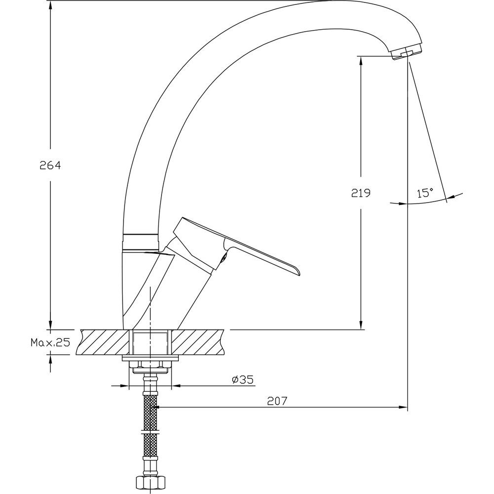Смеситель имеет высоту излива 21.9 см и длину 20.7 см, что позволяет свободно работать с посудой любого размера. Он оснащен аэратором для мягкости потока, гибкой подводкой для удобства монтажа, и идет в комплекте с креплениями. Глянцевая поверхность делает смеситель не только эстетически привлекательным, но и легким в уходе. Производится в России, что гарантирует высочайший уровень качества, подтвержденный гарантиями на 5 лет.