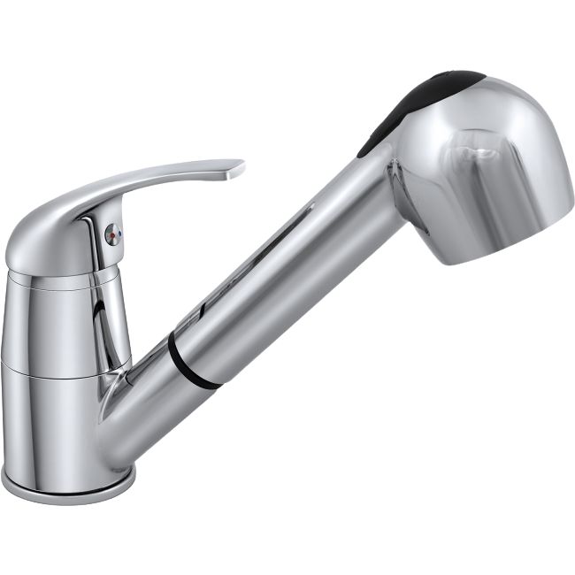 - Удобство эксплуатации благодаря выдвижному изливу и режиму «душ».