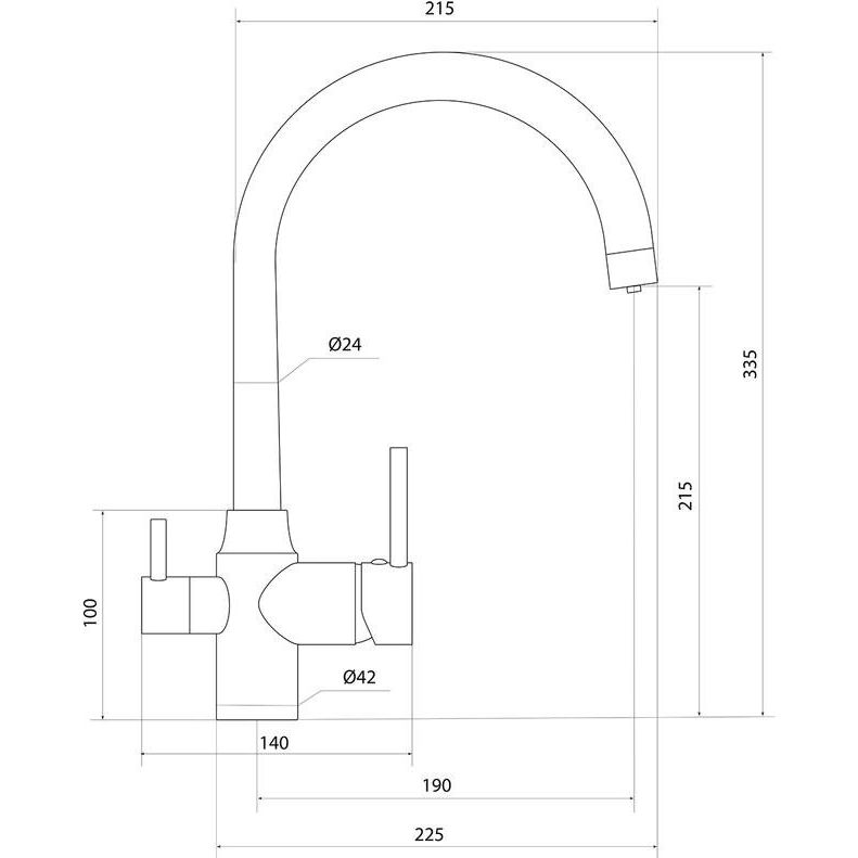 - Совмещенный излив для подачи питьевой фильтрованной воды.