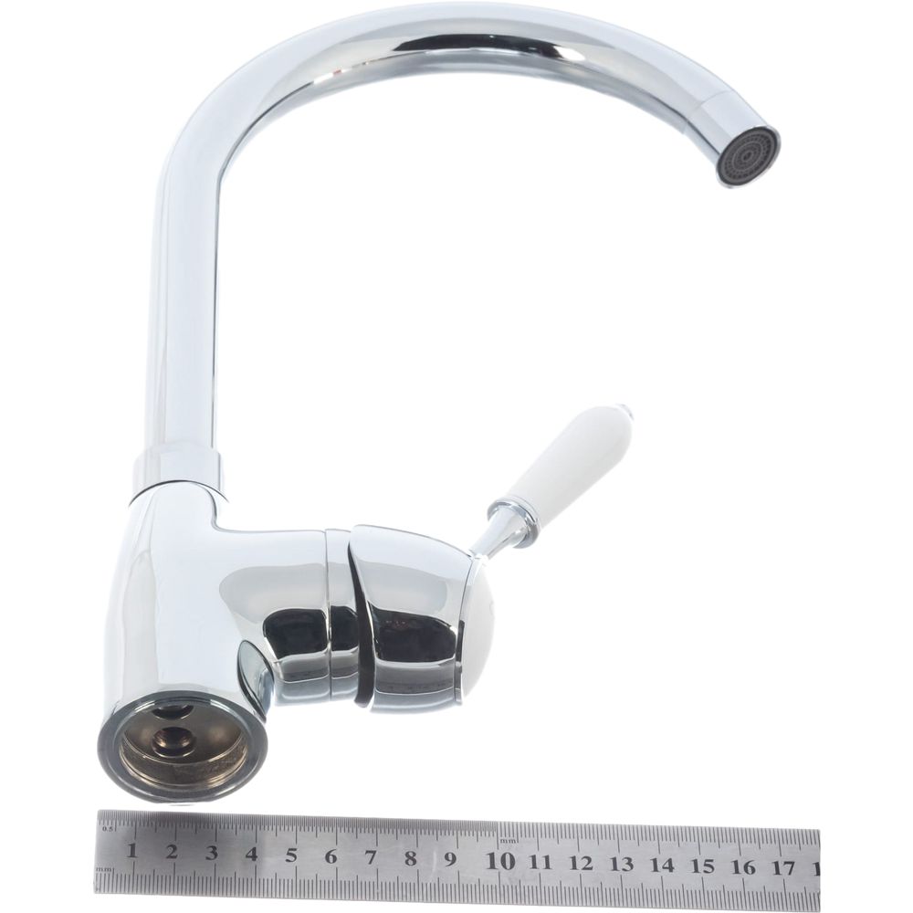 Смеситель выполнен из качественной латуни и оснащен керамическим картриджем диаметром 40 мм с увеличенным углом поворота 100 градусов. Высота излива составляет 26.5 см, а длина — 17 см, что делает его удобным для различных кухонных задач. Присутствует гибкая подводка длиной 50 см и аэратор для уменьшения расхода воды до 12 л/мин. На корпус изделия предоставляется 8-летняя гарантия, два года на остальные комплектующие.