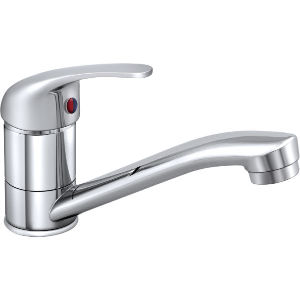 Смеситель из коллекции Прораб отличается компактными размерами: высота излива составляет 6,5 см, а длина — 15 см, что обеспечивает удобство в использовании и позволяет бережно расходовать кухонное пространство. Изготовлен из латуни, покрытие — глянцевое. Предусмотрено удобное крепление и элементарная установка благодаря гибкой подводке.