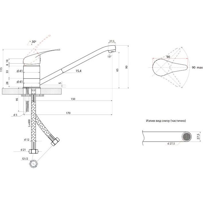- Надежная гибкая подводка из нержавеющей стали длиной 40 см, что облегчает установку.