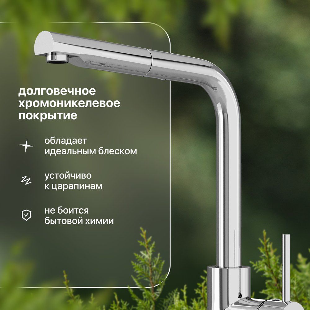Смеситель для кухни STWORKI HDN1309XH — это современное и экологически безопасное решение, которое облегчает выполнение множества кухонных задач. Благодаря выдвижному поворотному изливу вы легко наполните большие емкости, помоете овощи или быстро ополоснете мойку. Изделие изготовлено из латуни, сплава, полностью лишенного свинца, что гарантирует его безопасность для вашего здоровья. Хромоникелевое покрытие не только придает смесителю эстетически привлекательный блеск, но и делает его устойчивым к царапинам и воздействию бытовой химии. Использование керамического картриджа гарантирует длительный срок службы — до 500 000 циклов. Встроенный аэратор позволяет экономить воду, снижая расход до 5 литров в минуту. В комплект входит гибкая подводка, а также предусмотрена система быстрого монтажа для легкой установки.