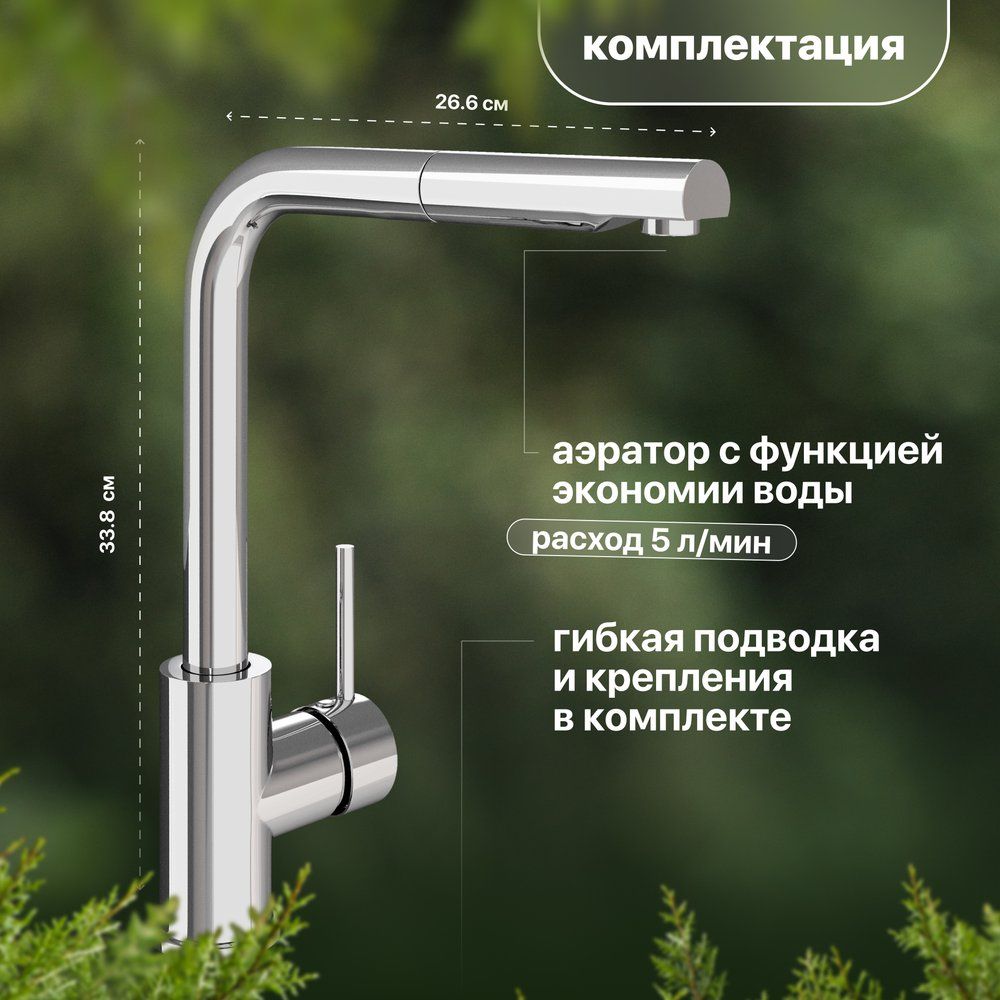 - Аэратор с функцией экономии воды до 5 л/мин, что снижает водные затраты.