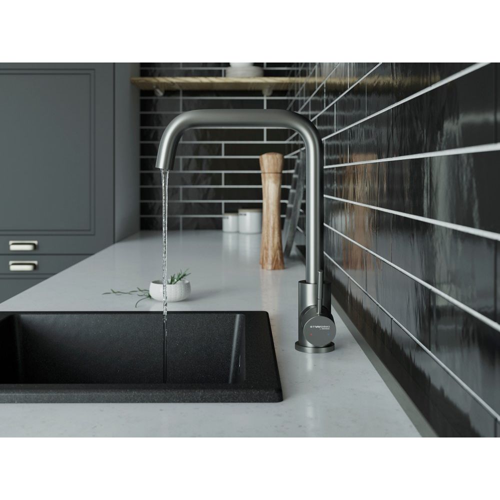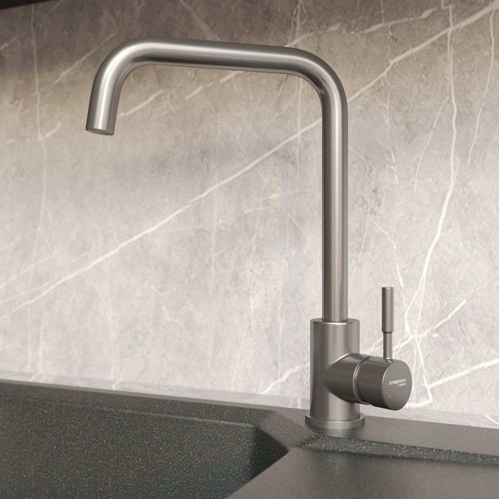 Смеситель для кухни STWORKI HSTW07100 в цвете никель — это не только функциональность для повседневного использования, но и стильный элемент интерьера. Изготовленный из высококачественной нержавеющей стали, он безупречно справляется с задачей в агрессивной кухонной среде: не поддается коррозии и легко переносит перепады температур. Особая L-образная форма и поворотный излив высотой 25 см делают мытье габаритной посуды гораздо проще. А благодаря керамическому картриджу Damixa в вашем распоряжении всегда будет стабильный и мощный напор воды.