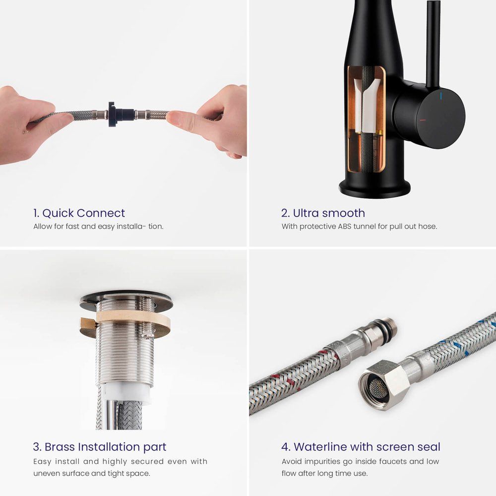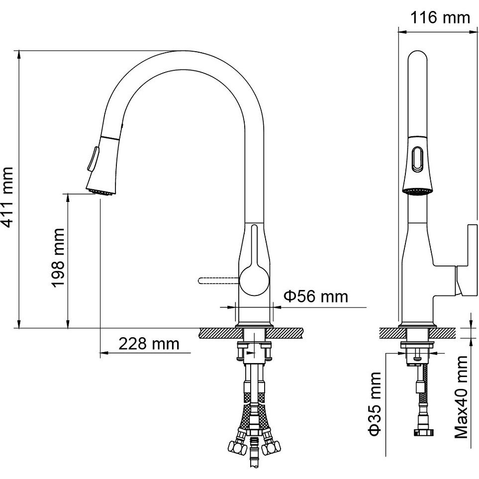 - Функциональность: выдвижной излив с режимом «душ» упрощает повседневные задачи на кухне.