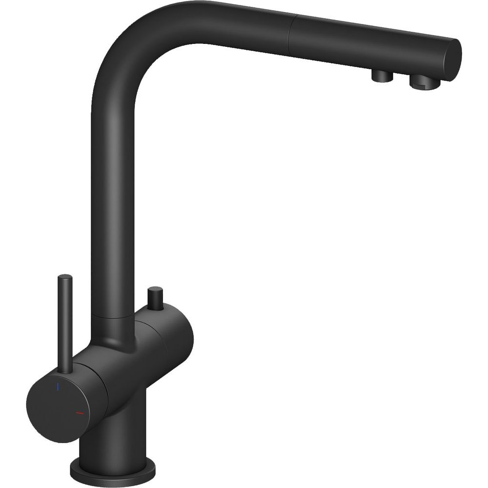 Смеситель для кухни Timo Saona 2356/03FL черного цвета — это сочетание элегантного дизайна, функциональности и скандинавского качества. Этот смеситель, обладающий матовой поверхностью, станет стильным дополнением любой современной кухни. Благодаря выдвижному изливу и режиму "душ", Timo Saona обеспечит удобное и быстрое ополаскивание посуды и овощей. Встроенный механизм подачи питьевой воды через дополнительный фильтрованный излив делает этот смеситель незаменимым для дома, заботящегося о комфорте и здоровье жителей.