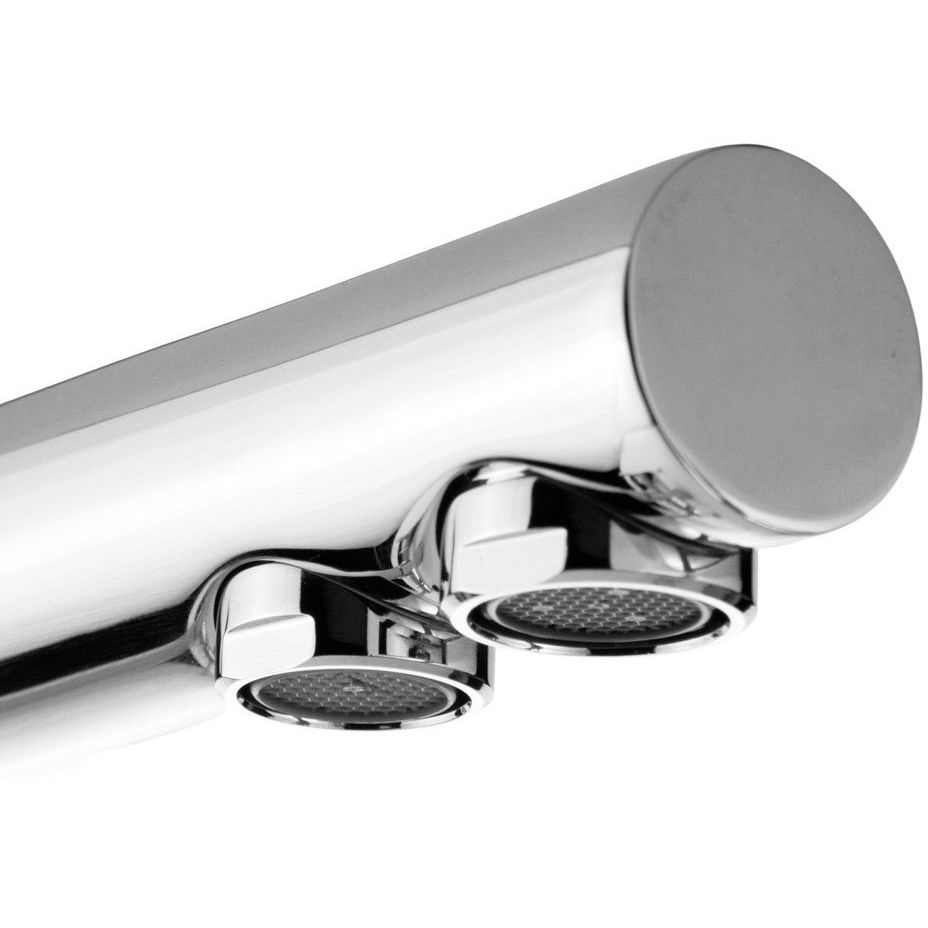 Смеситель Veragio Milano 30019 изготовлен из экологически чистой латуни, которая указывает на его долговечность и безопасность. Он оснащён высоким поворотным изливом высотой 29,4 см и длиной 19,4 см, что позволяет с лёгкостью наполнять даже большие кастрюли. Каждый канал — для проточной и фильтрованной воды — имеет свой аэратор, что способствует экономии воды и более мягкому потоку. Внутри смесителя установлен современный керамический картридж для более плавного и надёжного регулирования потоков воды. Гибкая подводка и прочные крепления делают установку удобной и быстрой. На изделие распространяется пятилетняя гарантия, что является отличным показателем надежности.