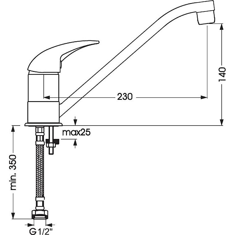 - Излив: высота 14 см, длина 23 см, что обеспечит удобство в пользовании.