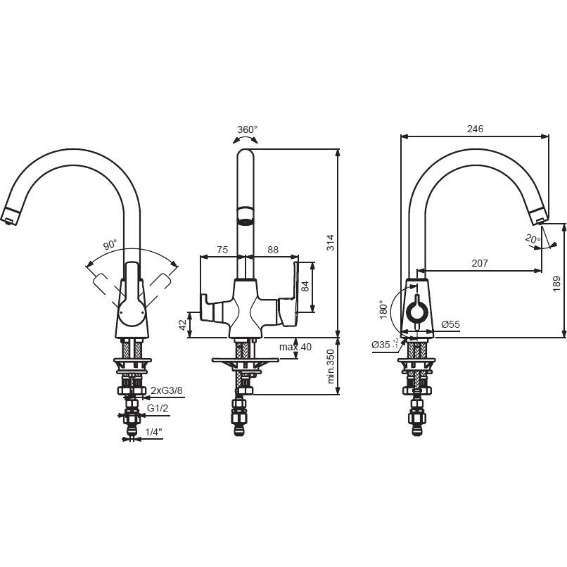 - Функциональность: вращающийся излив на 360° для облегчения работы.
