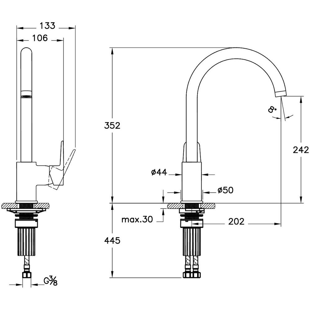 Смеситель высотой излива 24,2 см и длиной излива 20,2 см идеально подходит для современной кухни. Керамический картридж обеспечивает плавность и точность регулировки воды. Глянцевая поверхность не только выглядят роскошно, но и устойчива к появлению царапин. Аэратор способствует экономии воды, а гибкая подводка обеспечивает удобство во время установки. Смеситель произведен в Турции и имеет 10-летнюю гарантию, которая подтверждает его качество и долговечность.