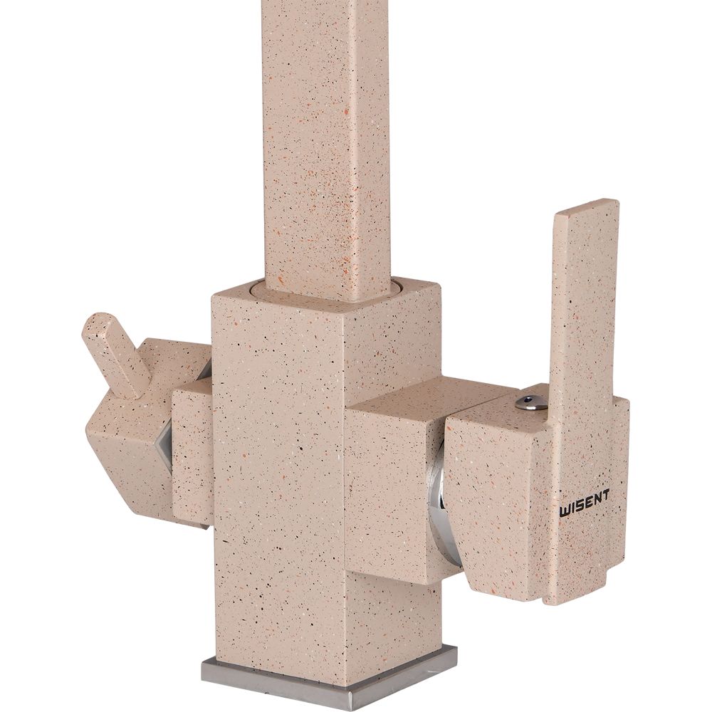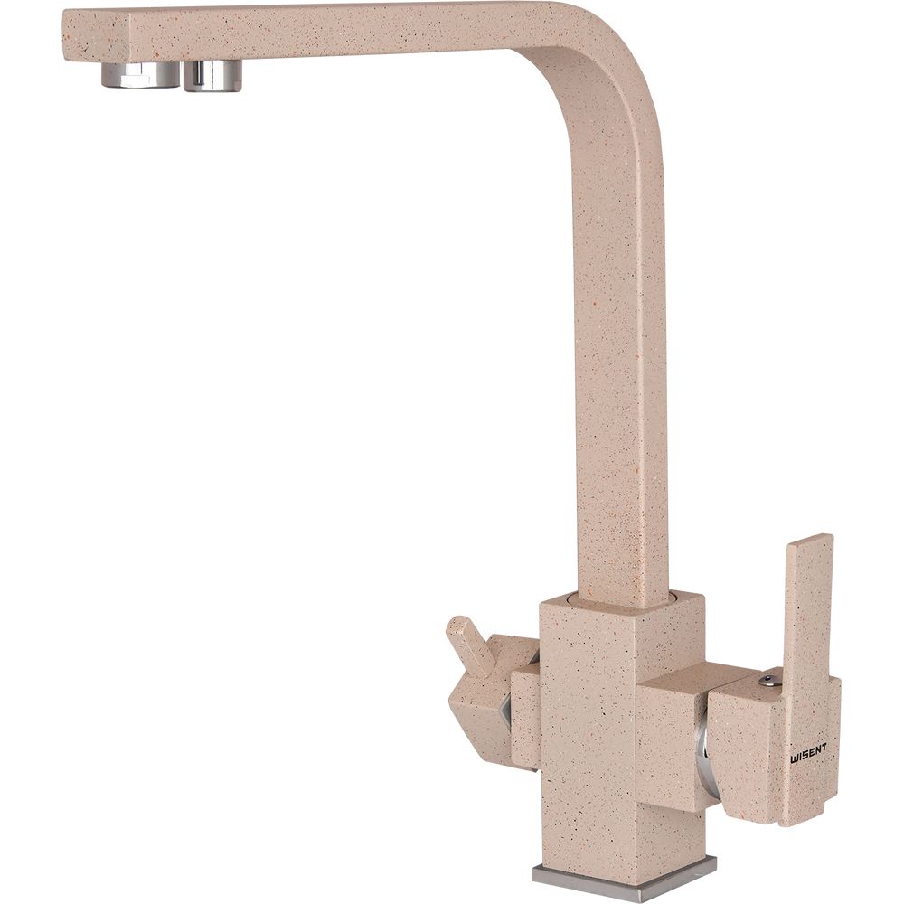 Смеситель для кухни Wisent W4371-3-21 в песочном цвете — это прекрасный выбор для современной кухни. Изготовленный из пищевой нержавеющей стали SUS 304, он сочетает в себе стиль и долговечность. Уникальная функция поворота излива на 360 градусов обеспечивает максимальное удобство, а возможность подачи фильтрованной воды через дополнительный излив делает его незаменимым помощником для заботящихся о своем здоровье. Матовая поверхность не только придает изделию изысканный вид, но и облегчает уход за ним, скрывая отпечатки пальцев и водные пятна.