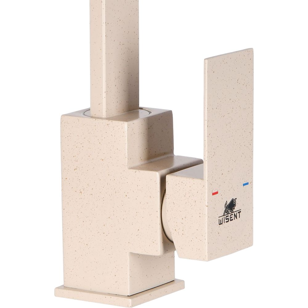 Смеситель для кухни Wisent WP49-098-6-20 бежевого цвета – это не просто функциональное устройство для вашей кухни, но и стильный акцент, который придаст вашей зоне приготовления пищи современный облик. Выполненный из пищевой нержавеющей стали SUS 304, этот смеситель отличается высокой прочностью и безопасностью. Его поворотный излив на 360° позволяет с легкостью управлять потоком воды, делая процесс мытья посуды или продуктов максимально удобным. Смеситель оснащен надежным керамическим картриджем, обеспечивающим плавное и точное регулирование температуры и напора воды.