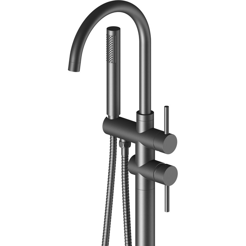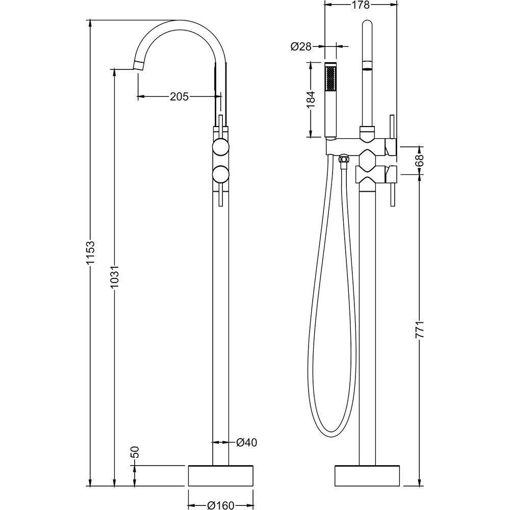 Этот напольный смеситель для ванны оснащен поворотным изливом длиной 20.5 см, что позволяет удобно направлять поток воды. Душевая лейка с одним режимом струи и длина шланга 150 см создают возможности для комфортного душа. В конструкции используется керамический картридж, обеспечивающий плавность хода и долговечность использования. Смеситель оснащён гибкой подводкой 1/2, аэратором и держателем для душа, что делает его функционально завершённым решением для вашей ванной.