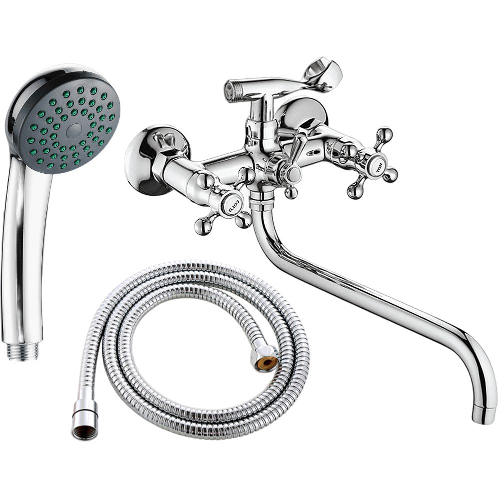Смеситель выполнен из высококачественной латуни, что гарантирует его устойчивость к коррозии и механическим повреждениям. Управление осуществляется через вентиль, а длина излива составляет 41.1 см, что удобно для установки над большой раковиной или кухонной мойкой. В комплект входит душевая лейка с одним режимом струи диаметром 8 см, а также аэратор, душевой шланг, эксцентрики и держатель для душа. Набор оснащен керамическими кран-буксами, которые обеспечивают надежное и мягкое управление. На смеситель предоставляется гарантия сроком на 5 лет, что подтверждает его высокое качество.