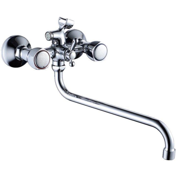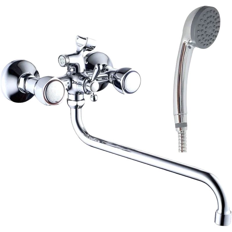 Универсальный смеситель Haiba HB2209 управляется с помощью вентилей, что позволяет точно регулировать напор и температуру воды. Керамическая кран-букса в механизме обеспечивает долговечность и легкость в использовании. Вынос излива составляет 33.7 см, что делает изделие удобным для повседневного использования. В комплект входит душевая лейка с одним режимом струи, душевая подводка с резьбой 1/2, а также аэратор для экономии воды.