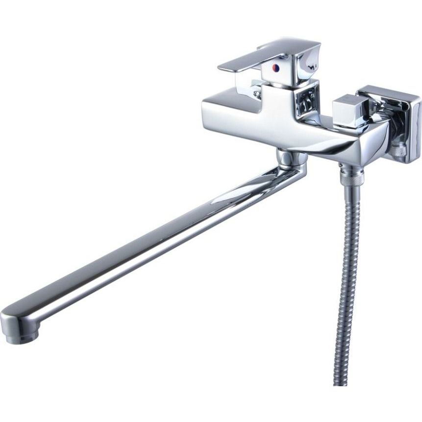 Смеситель длиной излива 41.5 см идеально подойдет для комбинирования с ванными и раковинами. Керамический картридж гарантирует плавность управления и надежную работу механизма. В комплект входит душевой гарнитур, включающий лейку диаметром 10 см с одним режимом струи, и душевой шланг. Для удобства установки прилагаются эксцентрики и настенный держатель. Все элементы оснащены стандартной подводкой 1/2, а также аэратором, что делает установку простой и быстрой.