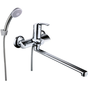 Этот универсальный смеситель оснащен долговечным керамическим картриджем и рычажным управлением, что гарантирует простоту при настройке потоков воды. Длина излива 35.6 см обеспечивает удобство при использовании. Душевая лейка диаметром 6.6 см и 1 режимом струи дополнена настенным держателем и металлическим душевым шлангом. В комплект также входят аэратор, эксцентрики и подводка 1/2, что значительно упрощает установку и использование.
