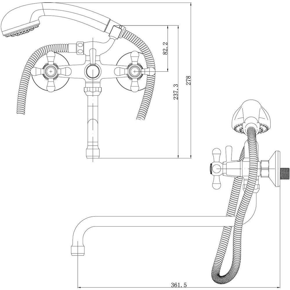 Это вентильный смеситель с керамической кран-буксой, что обеспечивает долговечность и комфортное использование. Длина излива составляет 36.15 см, позволяя легко устанавливать изделие в разнообразных условиях. В комплекте идет высококачественный душевой гарнитур, лейка с 8.4 см диаметром и пятью режимами струи, что помогает улучшить ваш опыт принимая душ. Эксцентрики и держатель для душа также включены для удобной установки.