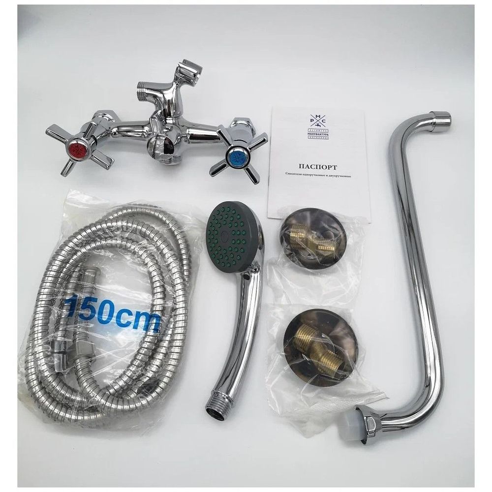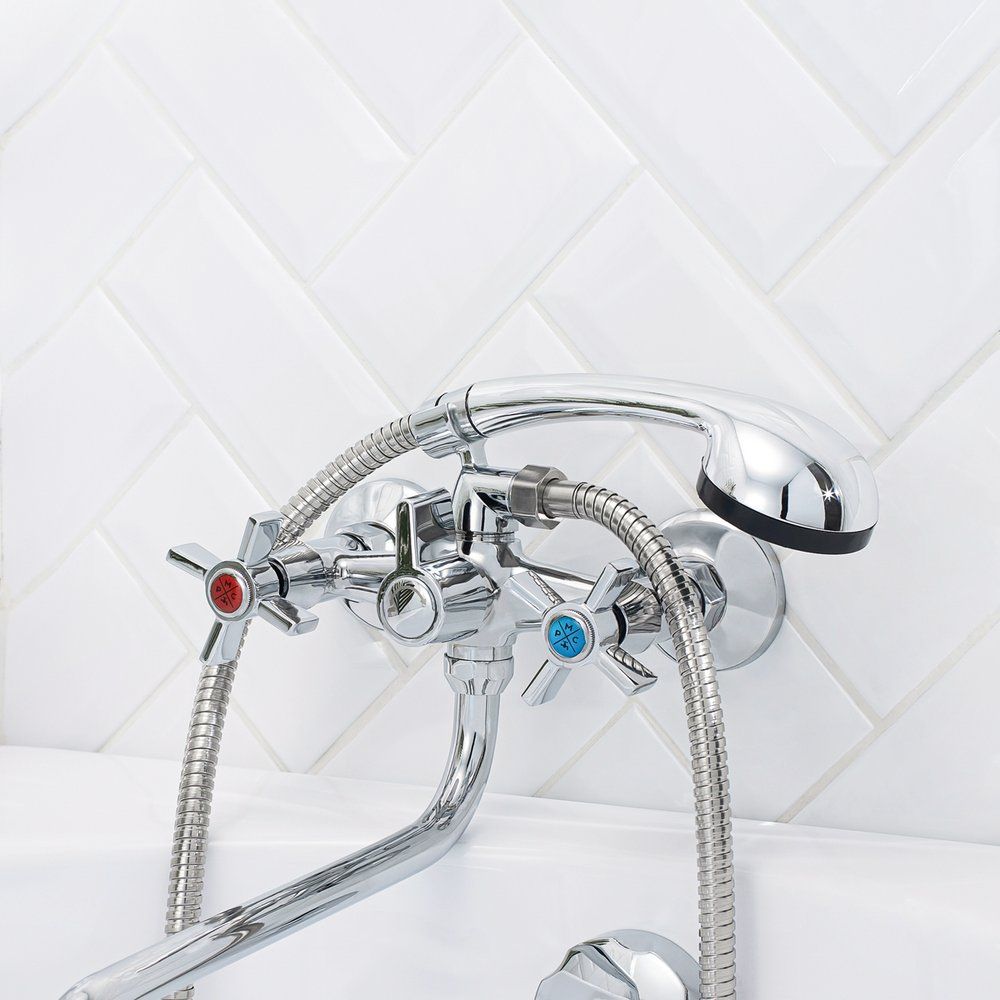 - Комплектация включает всё необходимое для установки и использования: душевая лейка, шланг, эксцентрики и держатель для душа.