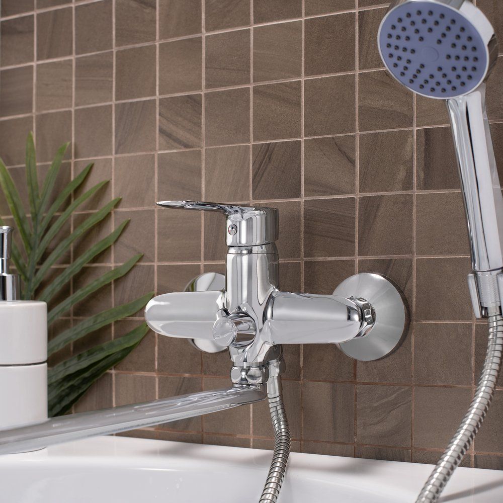 Смеситель выполнен из цинкового сплава и оснащен керамическим картриджем, который значительно увеличивает срок службы изделия. Глянцевая поверхность добавляет современный штрих в интерьер ванной комнаты. В комплект входит душевая лейка с размером 8.5 см и одним режимом струи, а также душевая подводка 1/2. Комплект поставки включает аэратор, эксцентрики, душевую лейку, душевой шланг и настенный держатель. Смеситель произведен в России и сопровождается гарантией сроком на 5 лет.