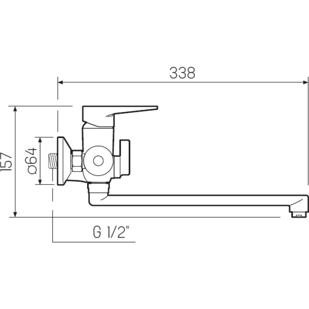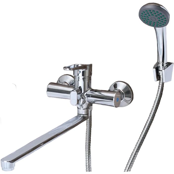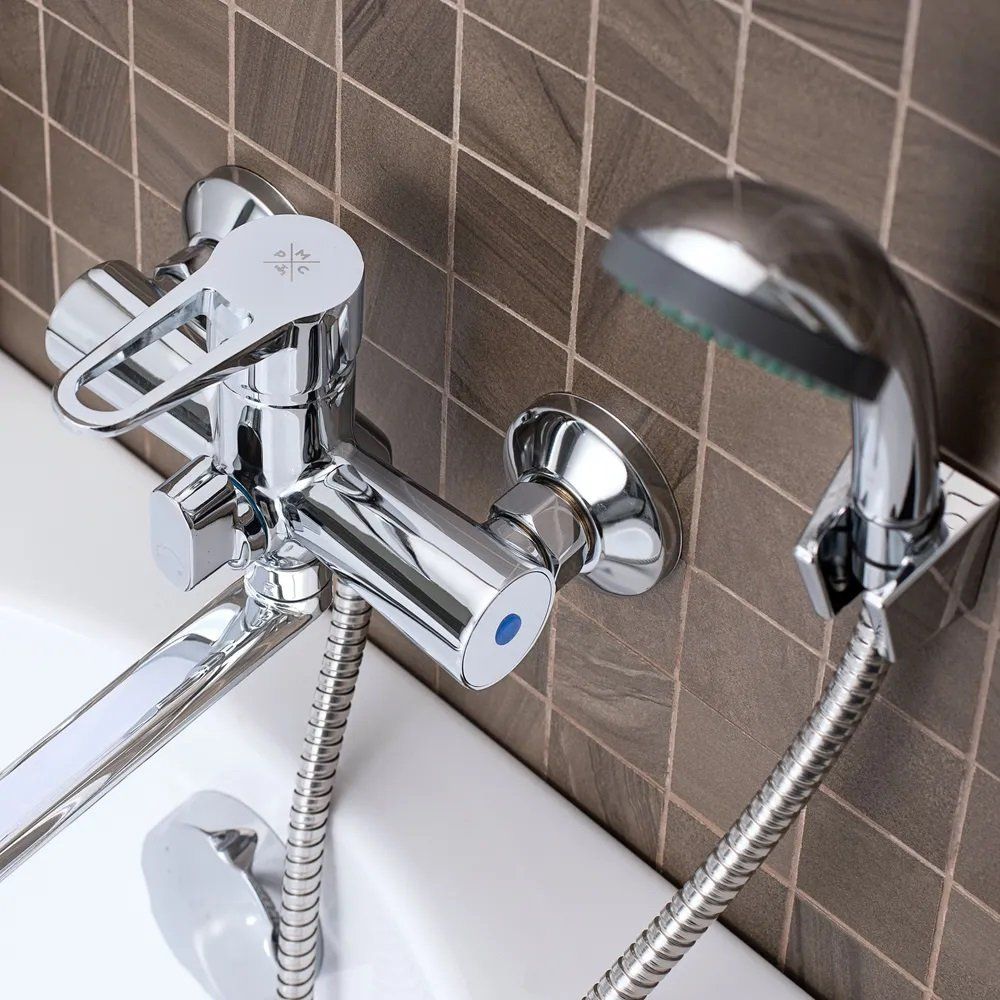 Смеситель оснащен рычажным управлением и керамическим картриджем, обеспечивающим точное регулирование температуры и потока воды. Аэратор, встроенный в смеситель, способствует экономии воды, поддерживая расход до 22 литров в минуту. Длина излива составляет 32.8 см, что делает его универсальным для различных типов раковин и ванн. В комплект входит душевая лейка диаметром 6 см с одним режимом струи, а также душевой шланг, эксцентрики и настенный держатель для удобства использования. Все элементы подсоединяются через подводку 1/2.
