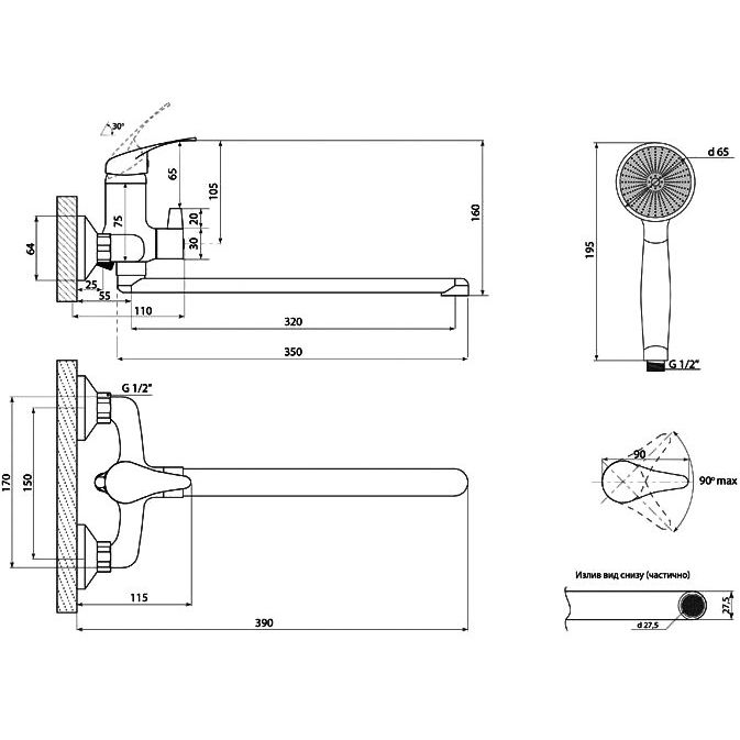 - Комплектуется душевым гарнитуром для комплексного решения.
