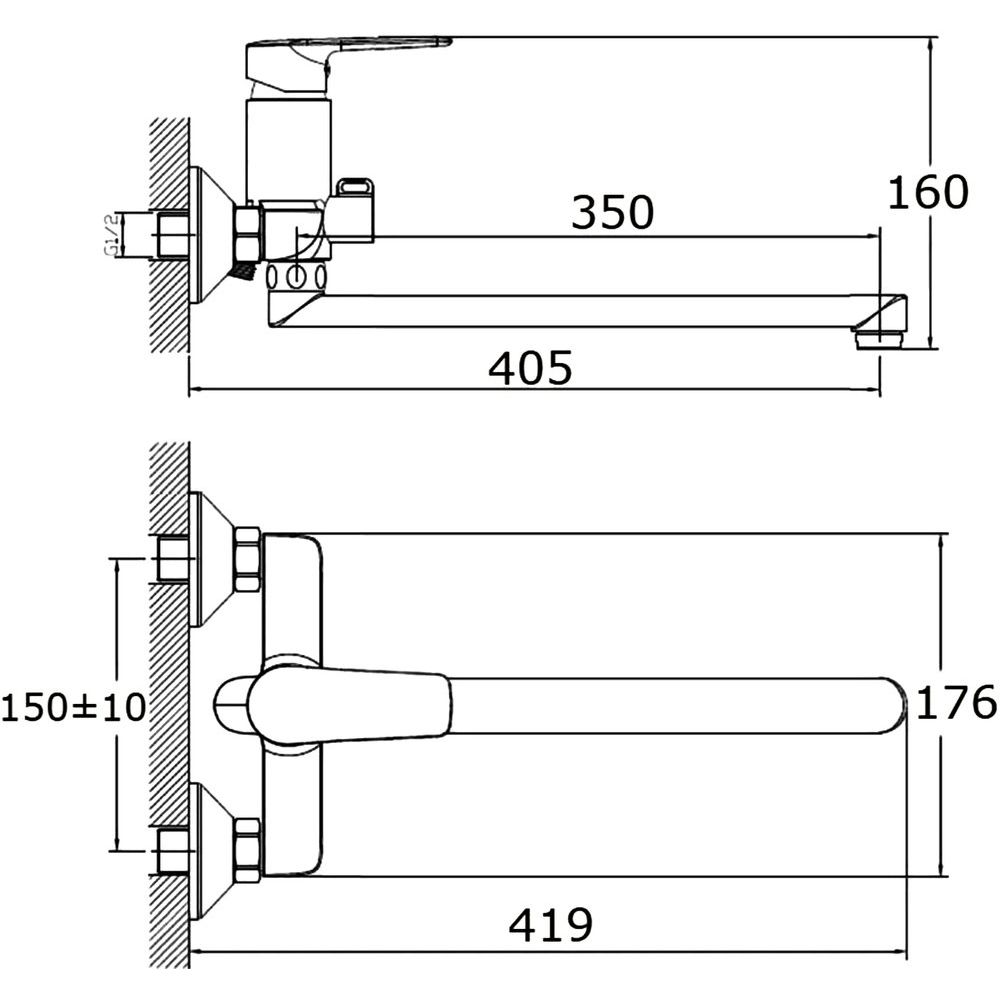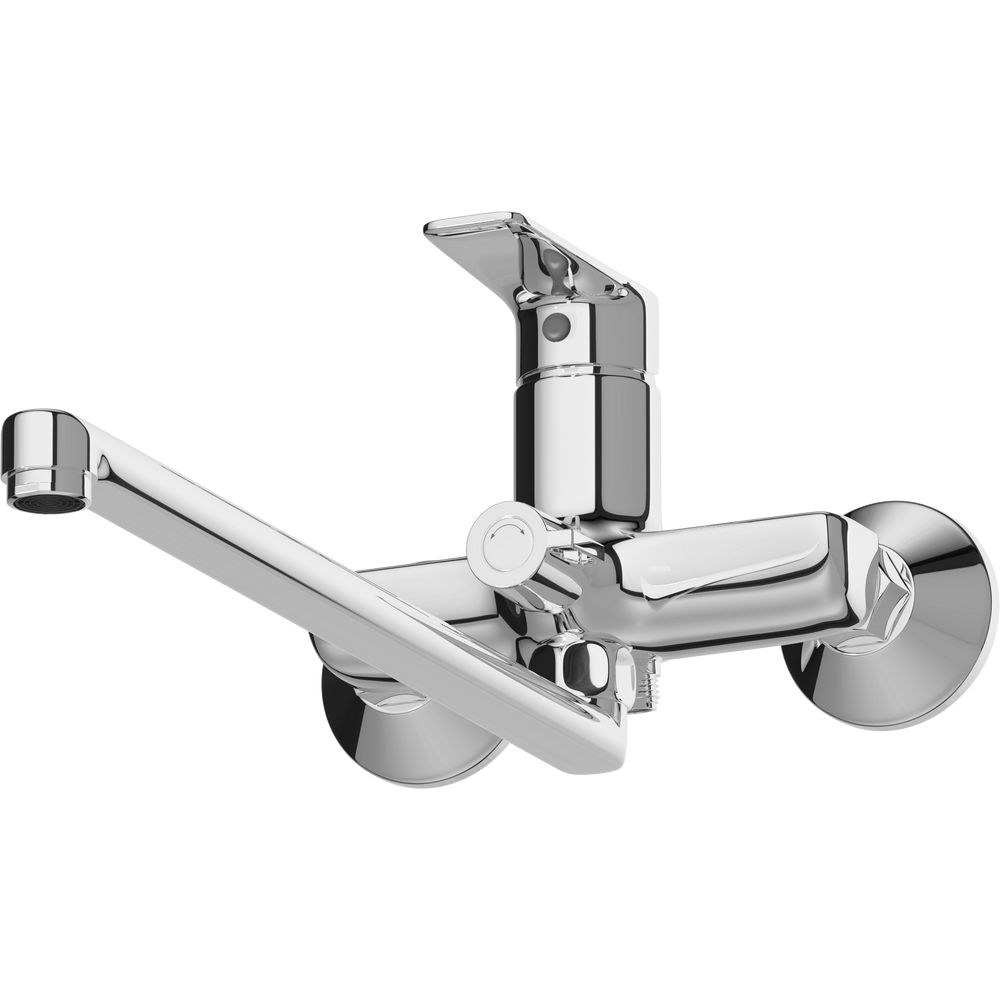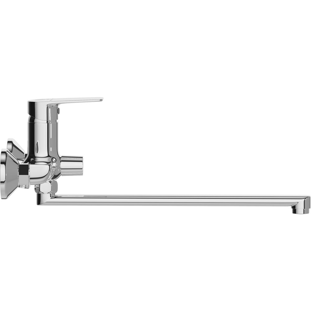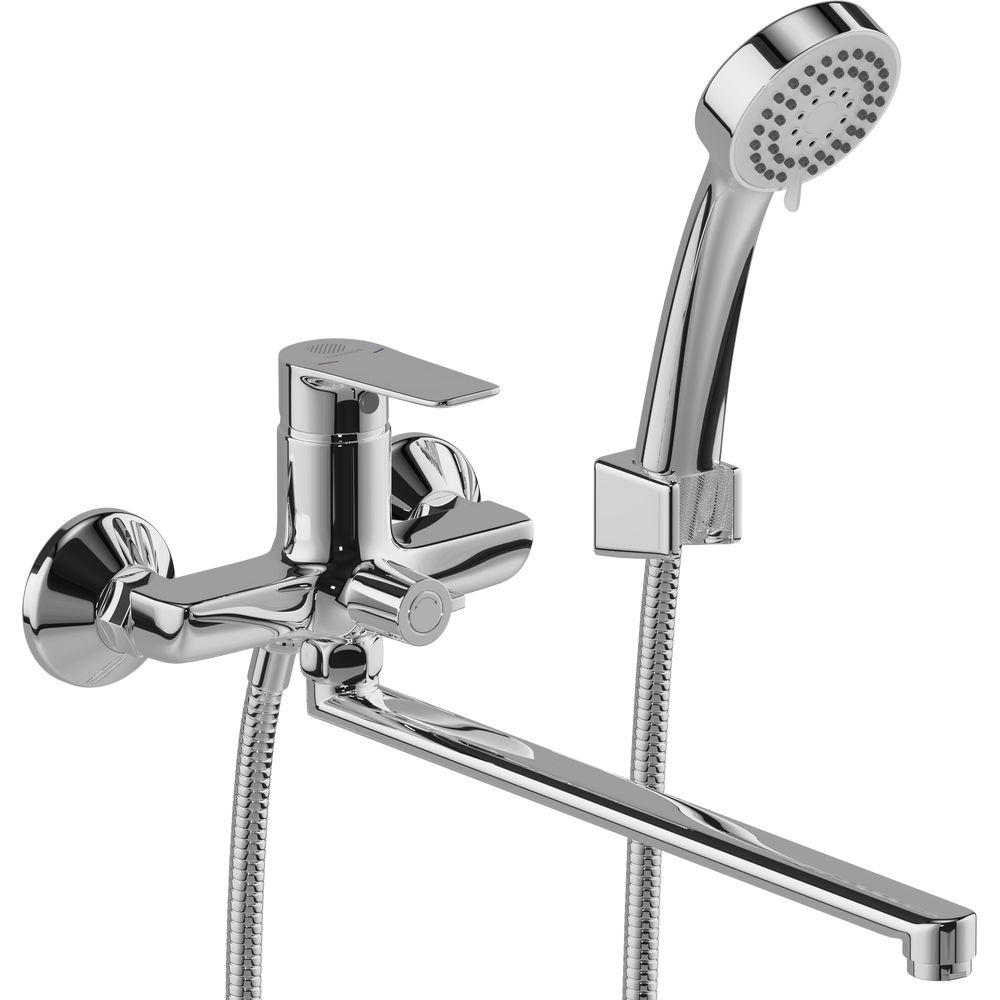 Смеситель оснащен длинным изливом в 40.5 см, что позволяет удобно использовать его как для ванны, так и для раковины. Аэратор помогает существенно снизить расход воды, оставаясь при этом эффективным. Душевой гарнитур в комплекте включает лейку с пятью режимами струи и размером 10 см, что позволяет адаптировать поток воды под ваши нужды. Также в комплект входят душевой шланг, эксцентрики и настенный держатель. Подключение подводки стандартного размера 1/2.